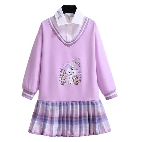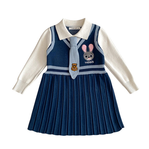 Ropa infantil Primavera y otoño Vestido preppy para niñas Vestido Jersey de punto Falda para niñas de 3 a 9 años