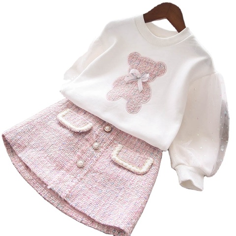 Venta al por mayor ropa para niños Conjunto de primavera y otoño chalecos + camisas + faldas conjunto dulce de tres piezas para niñas de 6 a 15 años