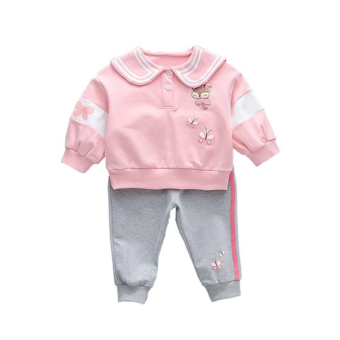 Ropa para niños, venta al por mayor personalizada, conjunto de Sudadera con capucha para niña pequeña de primavera y otoño, dos conjuntos informales sueltos para niñas de 1 a 6 años