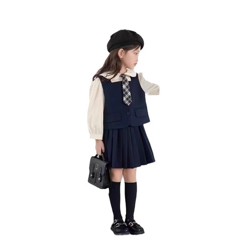 Traje para niños al por mayor Primavera y otoño niñas traje preppy chaleco + camisa + falda conjunto de tres piezas niñas 6-15 años